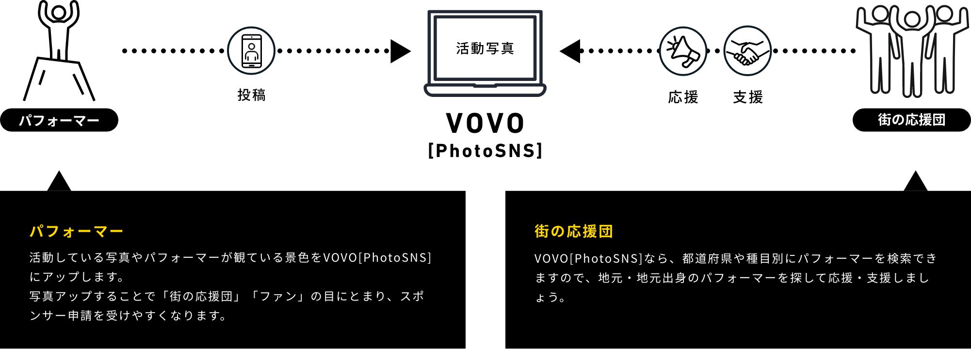 VOVO[PhotoSNS]では、活動写真を投稿して地元・地元出身で頑張っているパフォーマーとしてPR活動できます。